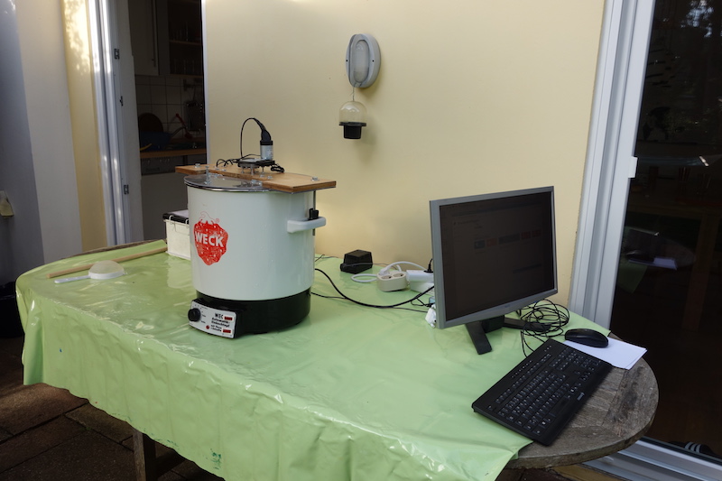 Überwachung des Maischvorgangs aus der Hängematte. Heute mal eine Malzmischung 'Almtaler Hefeweisse' nach Hubert Hanghofers Rezept.
